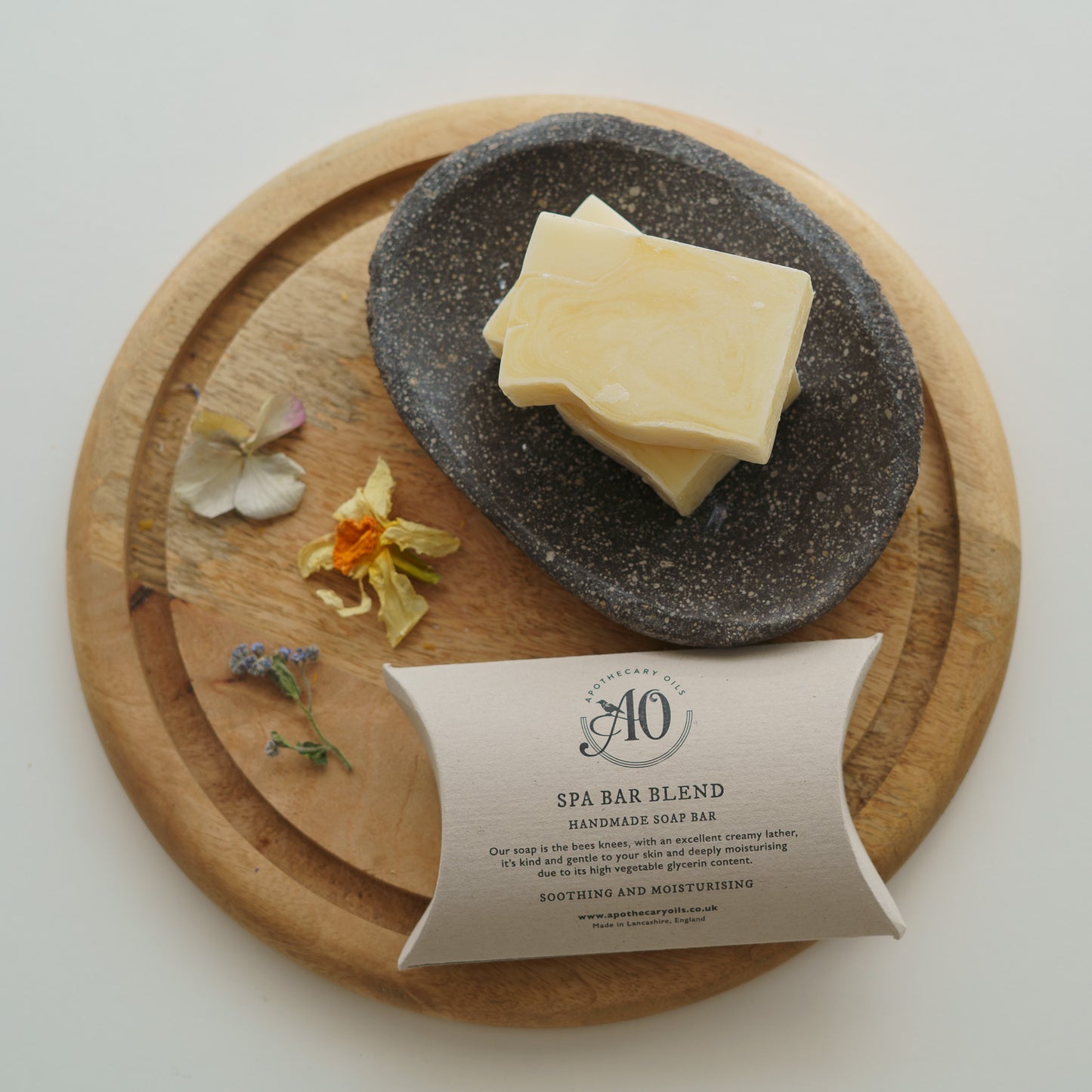 Our handmade Spa Bar is made with 70% organic ingredients and fragranced with pure essential oils.